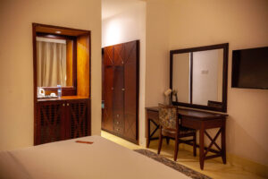 This double room futures a King Bed with walk-in shower, 32 inch smart screen Tv, USB Sockets, and a large balcony...